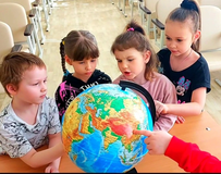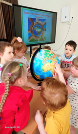 Воспитатели провели познавательную беседу «Что такое глобус?». В ходе беседы ребята узнали, что планета — это огромный шар и большую часть земли занимает вода. Мальчики и девочки определили, что большую часть Земли занимает вода – это моря и океаны. Также отметили, что есть на глобусе желтый, зеленые и коричневые цвета – это суша окрашена в разные цвета, так как на Земле есть пустыни, леса и горы. Воспитанники нашли и самое холодное место на Земле – это южный полюс, который на глобусе он размещен в нижней части, где проходит земная ось. Здесь вечные льды и морозы. Еще холодно на северном полюсе – самая верхняя точка глобуса.