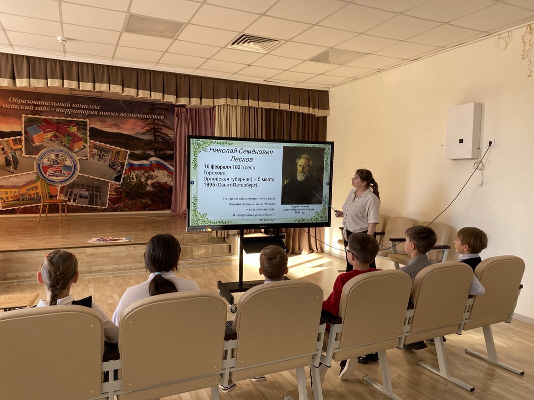 На уроке дети познакомились с биографией Лескова, узнали о его первых публикациях и работе в газете «Северная пчела». Для лучшего восприятия творчества школьники посмотрели мультфильм по рассказу «Левша», который воплощает древнюю русскую легенду о мастерстве и смекалке, и ответили на вопросы викторины.